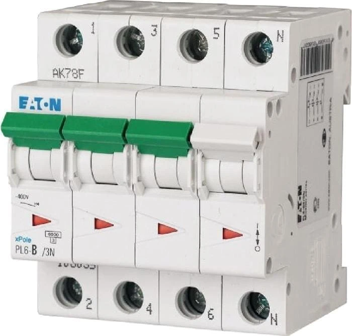 Автоматический выключатель Eaton (Moeller) четырехполюсный 63ампер PL6-C63/3N. Для защиты линий электропитания от критических нагрузок и токов короткого замыкания. Автоматические выключатели Moeller (Eaton (Moeller)) в ценовом диапазоне являются лучшими в категории цена-качество.
