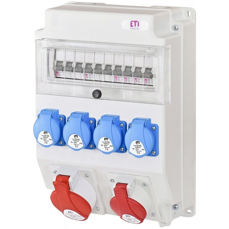 Монтажный набор EDS11 4-2/2-5 16/32 с переключателем 1x32A(3P+N+PE), 1x16A(3P+N+PE), 4x16A(2P+PE), 4x16A(C16/1), 1x16A(C16/3), 1x32A(C32/3), IP44 (артикул 004483302) от производителя ETI представляет собой надежное решение для распределения электрической энергии на промышленных объектах и строительных площадках. Этот монтажный набор предназначен для подключения переносной электроаппаратуры, обеспечения защиты от токов коротких замыканий и перегрузок, а также для включения и выключения различных устройств.