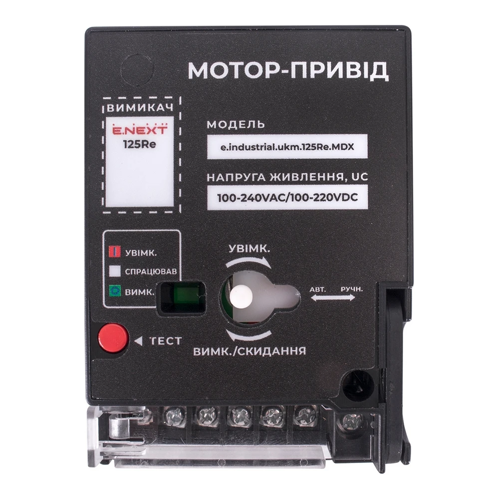 Мотор-привод e.industrial.ukm.125Re.MDX 230В i081025 от производителя ENEXT предназначен для дистанционного включения и выключения автоматических выключателей серии e.industrial.ukm.Re в главных распределительных щитах, вводно-распределительных устройствах и щитах управления. Это устройство отвечает требованиям Технических регламентов низковольтного электрического оборудования и электромагнитной совместимости, в частности, стандартам ГОСТ EN 60947-1 и ГОСТ EN 60947-2.