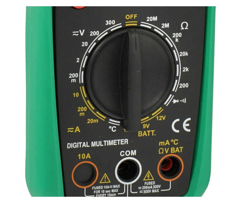 Мультиметр выполнен из прочных материалов и оснащен монохромным STN РК-экраном с подсветкой, что облегчает использование в условиях низкой освещенности. Устройство имеет индикацию заряда батареи и функции HOLD, позволяющие фиксировать измеренные значения для последующего анализа. Пределы измерения переменного и постоянного напряжения достигают 300 В, а предел измерения тока составляет 10 А. Мультиметр также может измерять сопротивление до 20 МОм и температуру в диапазоне от 0 до 1000 °C.