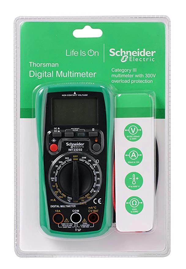 Цифровой мультиметр, такой как IMT23202 от Schneider Electric, представляет собой мощный и многофункциональный измерительный прибор, предназначенный для замеров постоянного и переменного напряжения, тока, сопротивления и температуры. Этот компактный инструмент идеально подходит как для профессионалов, так и для любителей, обеспечивая высокую точность и надежность в работе.