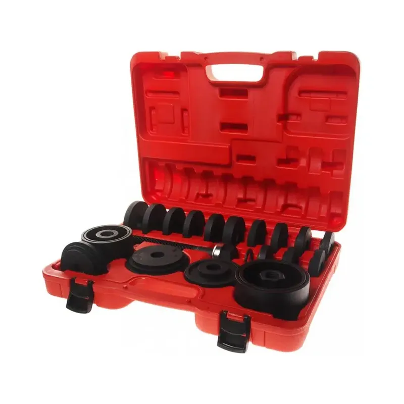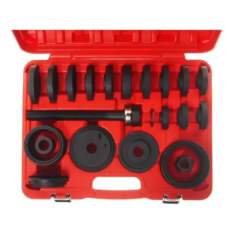 В набор входят 23 необходимых инструмента, которые облегчают процесс снятия подшипников с передних ступиц различных автомобилей. Компактный и прочный кейс обеспечивает удобство хранения и транспортировки. Особенности подключения и монтажа предполагают легкость в эксплуатации инструмента благодаря интуитивно понятным элементам управления, что позволяет значительно сэкономить время на выполнение работ.