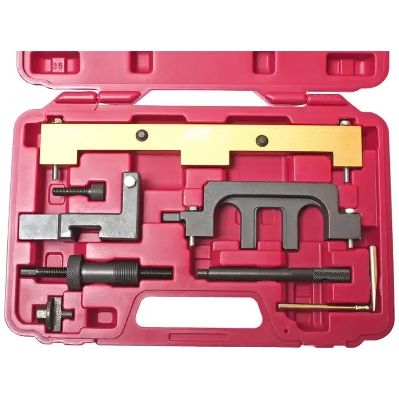 Набор включает восемь фиксаторов, позволяющих удобно и быстро фиксировать распределительные валы в нужном положении при проведении ремонтных работ. Использование этих фиксаторов обеспечивает точность при установке и снятии головки цилиндров, минимизируя риск повреждения двигателя во время ремонта. Компактный и прочный кейс облегчает транспортировку и хранение инструмента.