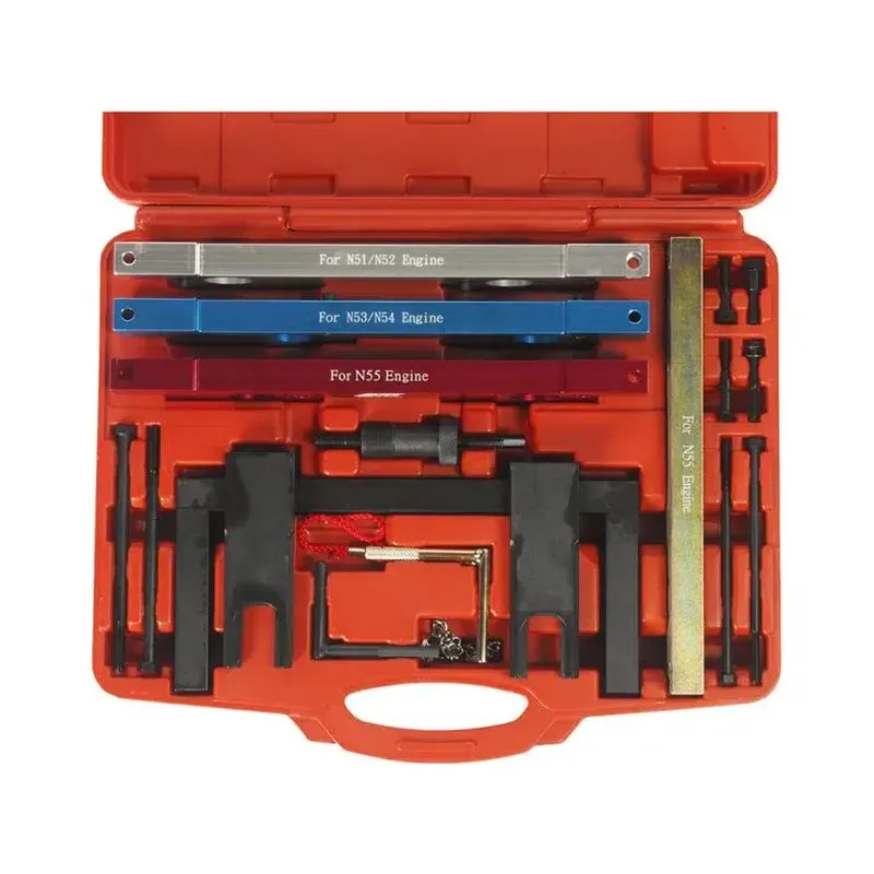 Набор включает в себя все необходимые инструменты для точной настройки и фиксации распредвалов. Ключевые характеристики: надежность материалов, долговечность, а также простота в использовании. Монтаж и подключение оборудования не требуют дополнительных инструментов и могут быть выполнены даже менее опытным специалистом. Преимущества использования данного набора заключаются в возможности качественного выполнения работ по регулировке клапанов, что особенно важно для двигателей BMW.