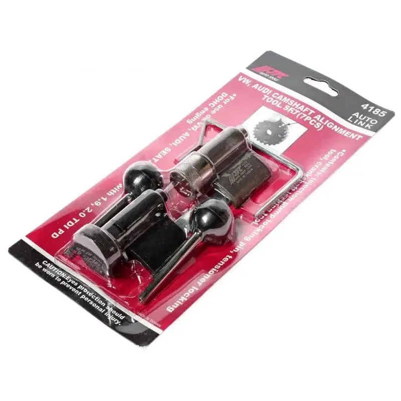 Набор фиксаторов VW, AUDI 1.2, 1.4, 1.6, 1.9, 2.0 TDI PD DOHC (артикул: 4185 JTC) предназначен для профессионального использования при проведении ремонтных работ на двигателях автомобилей Volkswagen и Audi. Этот инструмент необходим для точной установки и фиксации распределительных валов, обеспечивая правильную синхронизацию всех компонентов двигателя.