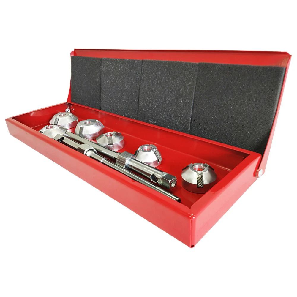 В состав набора входят фрезы (шарошки) с различными диаметрами и углами, а также направляющие стержни (пилоты) диаметром 9 и 11 мм. Эти инструменты имеют фиксированные режущие ножи, что позволяет обеспечить стабильное качество обработки. Направляющие стержни обеспечивают точное позиционирование инструмента, особенно важно для соблюдения заводских рекомендаций по углам и диаметрам седел клапанов.