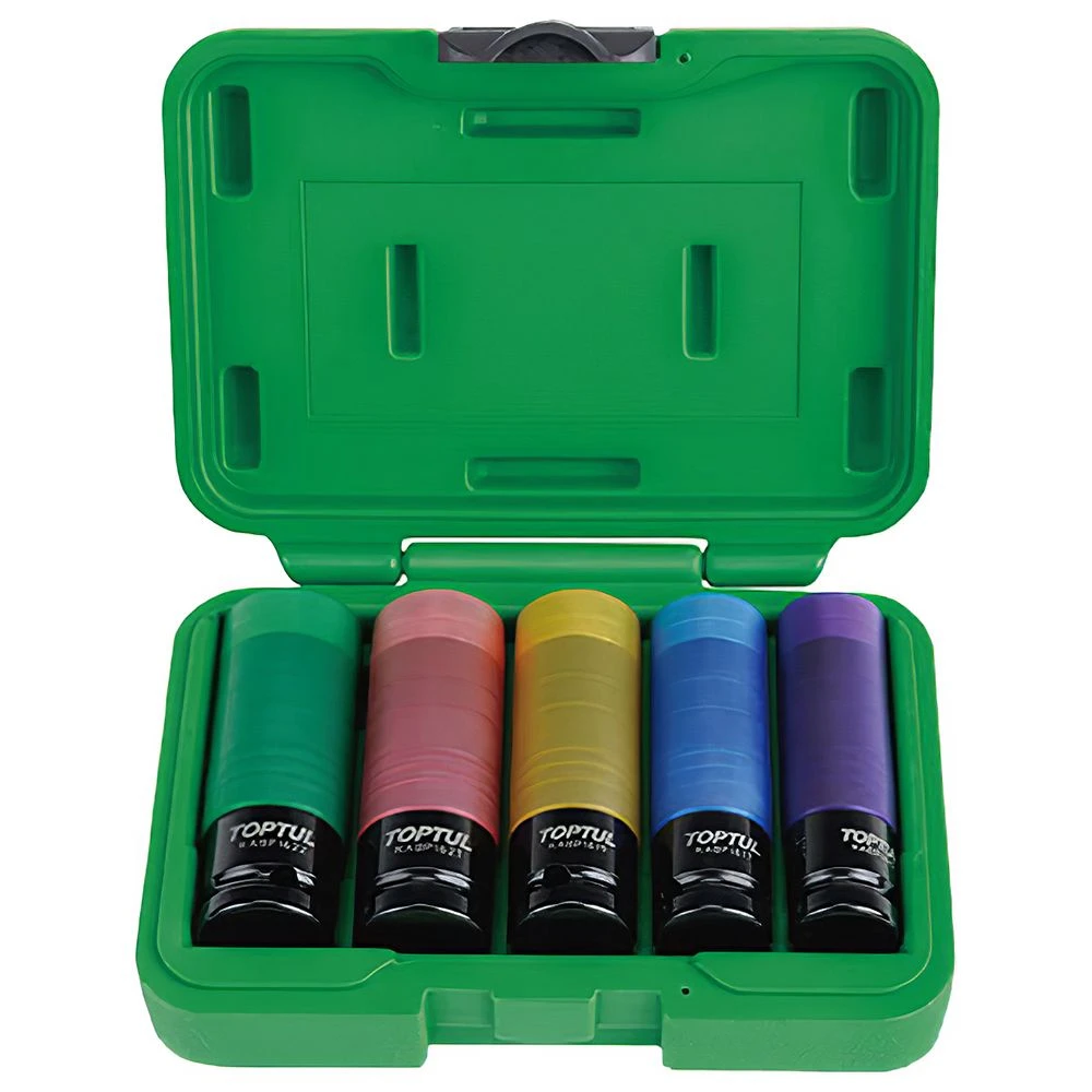 Представляем вашему вниманию набор головок 1/2" для шиномонтажа от компании TOPTUL, настоящий незаменимый инструмент для профессионалов в сфере автосервиса. Данный набор включает в себя пять ударных длинных головок, изготовленных из высококачественного материала CR-MO, обеспечивающего долговечность и стойкость к нагрузкам. Артикул товара – GDAI0503.