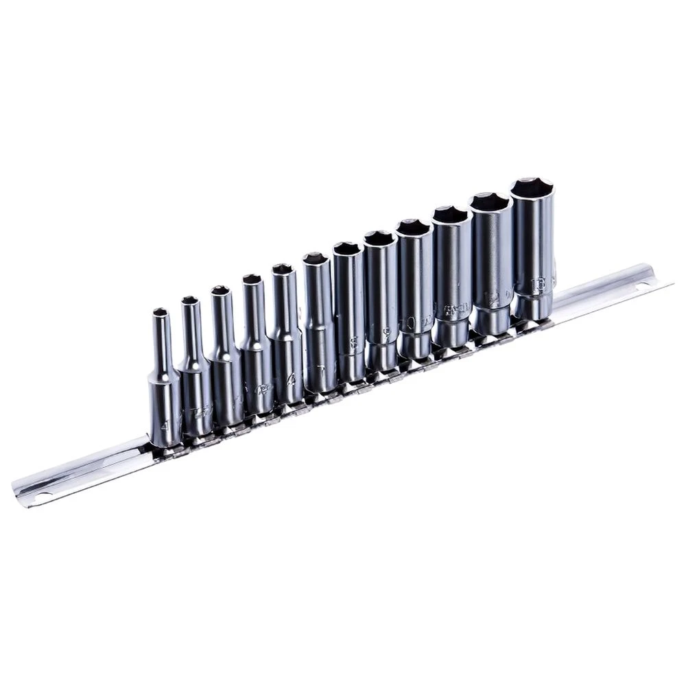 Набор длинных головок TOPTUL 1/4" — идеальное решение для профессионалов и любителей, которым необходимы высококачественные инструменты для выполнения разнообразных задач. Известный тайваньский производитель TOPTUL предлагает этот набор, состоящий из 12 единиц, включая головки различных размеров от 4 до 13 мм. Каждый элемент набора имеет 6-гранный рабочий профиль, что обеспечивает надежное сцепление с крепежом и уменьшает вероятность срыва.