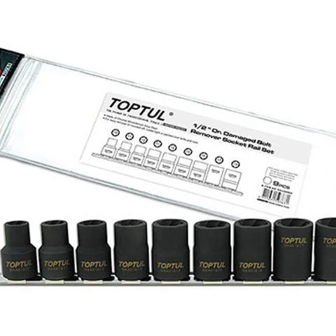 Набор головок для поврежденных гаек является незаменимым инструментом для любого автомобилиста или мастера, сталкивающегося с проблемами откручивания поврежденных или закисших гаек. Изготавливаемый компанией TOPTUL из Тайваня, этот набор включает 9 высококачественных торцевых головок с присоединительным профилем 1/2".