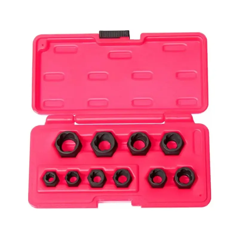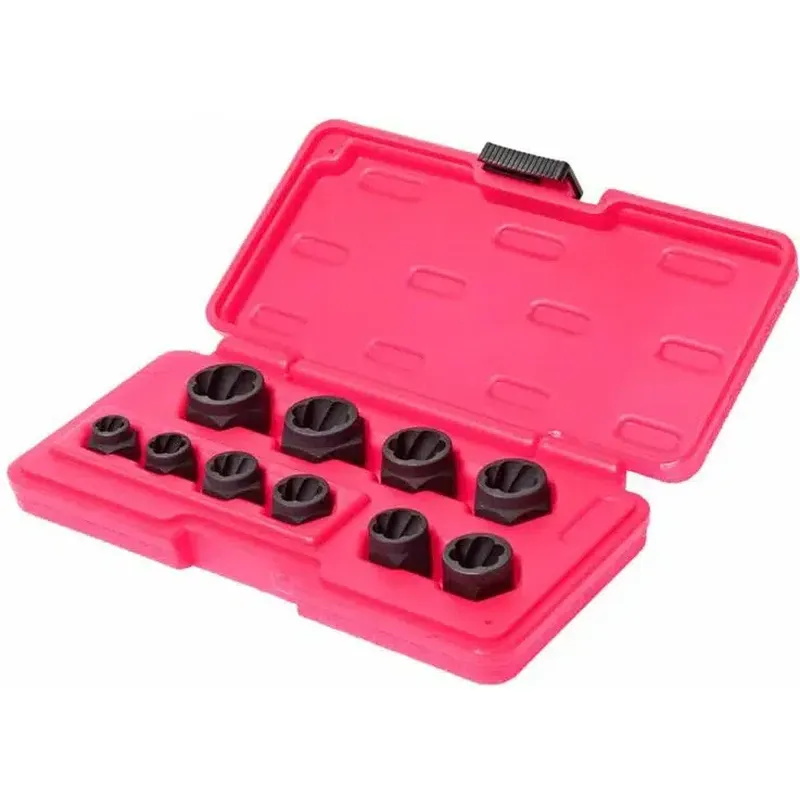 Головки в наборе действуют по принципу захвата поврежденных гаек. Благодаря специальной форме, они скользят по поверхности гайки и эффективно захватывают ее, позволяя без усилий откручивать даже самые заблокированные элементы. Это делает процесс ремонта более быстрым и менее затратным по времени.