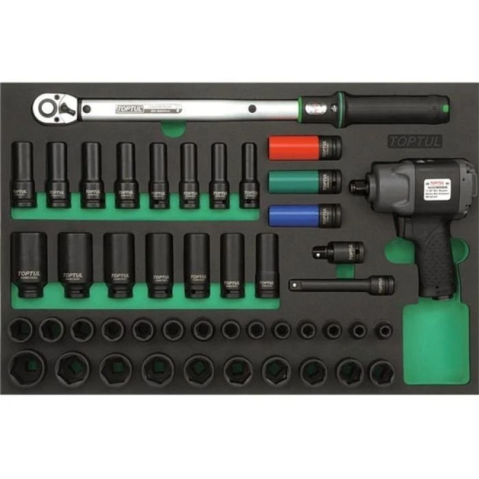 Набор инструментов от известного производителя TOPTUL предлагает высокое качество и надежность для профессионалов и любителей. Этот набор включает в себя все необходимое для работы с ударными головками и пневмогайковертом, обеспечивая широкий выбор инструментов для выполнения различных задач.
