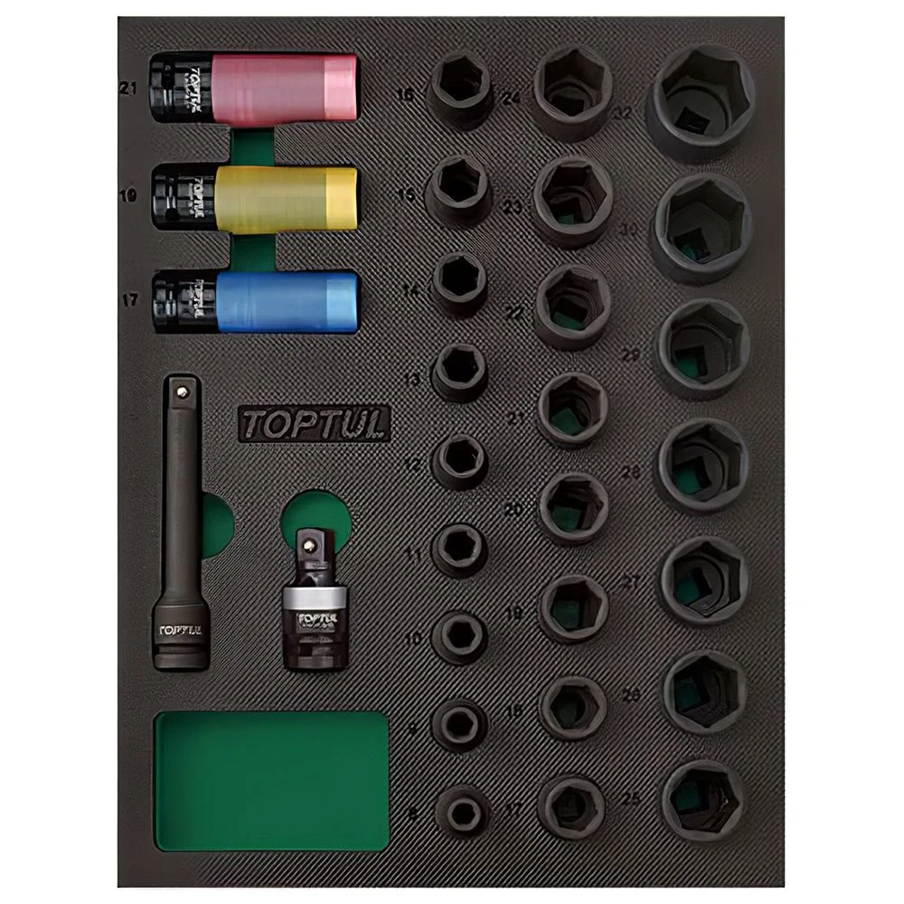 Артикул данного продукта - GVB2906. Набор головок ударных TOPTUL соответствует высоким стандартам качества, что делает его надежным выбором для профессионалов в области ремонта и обслуживания автомобилей, а также для домашних мастеров. Благодаря своей функциональности и качеству, этот набор станет незаменимым инструментом в арсенале каждого.