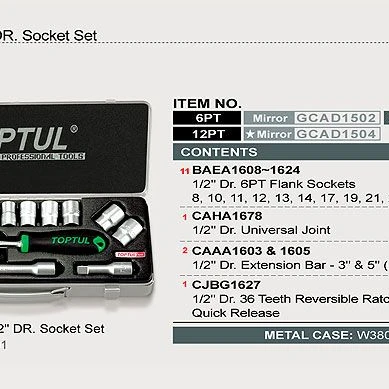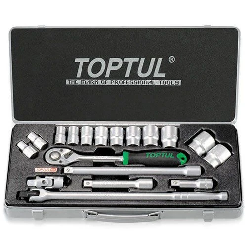 В заключение, набор инструмента 1/2" 15 ед. в металлическом кейсе от TOPTUL — надежный помощник в мире ремонта и обслуживания. Высокое качество, разнообразие инструментов и удобство использования делают его отличным выбором для каждого, кто ценит надежность и профессионализм.