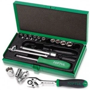 Все размеры инструмента в наборе являются метрическими, а присоединительный квадрат составляет ¼ дюйма, обеспечивая совместимость с большинством стандартных крепежных элементов. Набор TOPTUL GCAD1701 отличается высоким качеством материалов и сборки, гарантируя долговечность и надежность в эксплуатации.