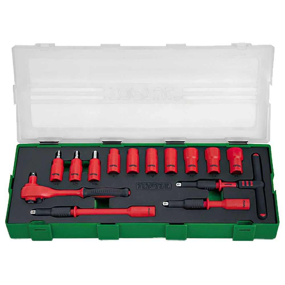 Набор инструмента электроизолированного VDE 1/4" 14ед. (6-ти гранный) от компании TOPTUL (Тайвань) представляет идеальное решение для выполнения электромонтажных работ, а также для автосервиса и ремонта. Этот набор включает 14 единиц инструмента, что делает его универсальным для различных задач. Благодаря качественным материалам и инновационным технологиям производства, данный набор обеспечивает надежность и долговечность при использовании.
