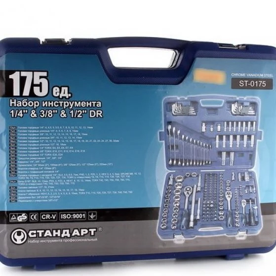 Набор инструментов 1/4", 3/8" и 1/2" 175 ед. ST-0175 от известного производителя Стандарт (Индия) представляет собой универсальное решение для выполнения различных задач в области ремонта, обслуживания автомобилей и домашнего хозяйства. Этот набор включает в себя 175 различных единиц, что делает его идеальным для профессионалов и любителей, стремящихся к качеству и удобству в работе.
