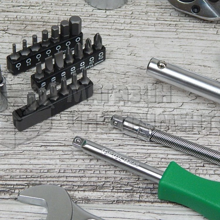 Весь инструмент в наборе выполнен в метрической системе, а рукоятки имеют прорезиненные покрытия для удобства и надежности при работе. Присоединительные квадраты имеют размеры ½ и ¼ дюйма, что предоставляет возможность использования различных насадок и головок.
