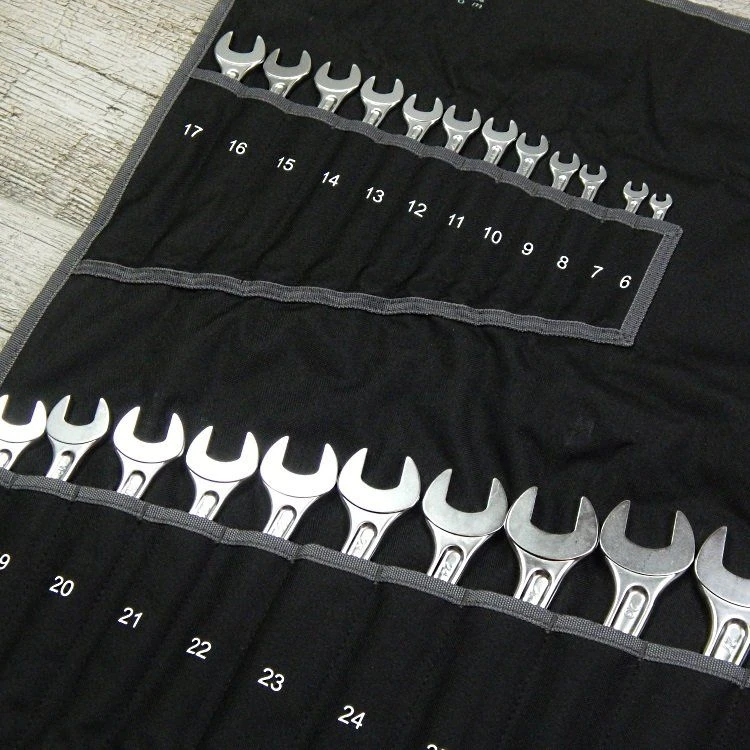 Все ключи упакованы в удобный тряпичный чехол, обеспечивающий защиту и удобство транспортировки. Такой подход к упаковке делает использование набора максимально комфортным, позволяя легко организовать хранение инструментов.