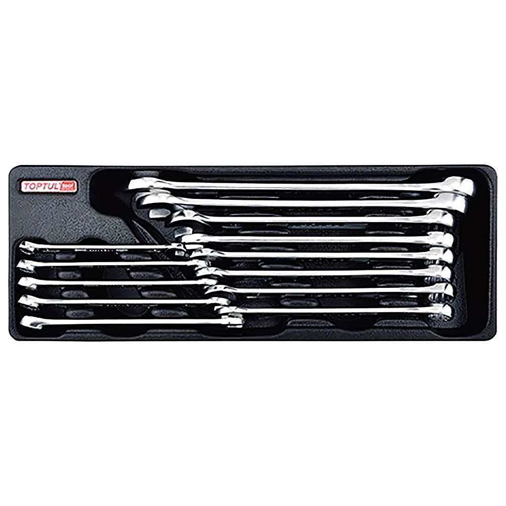 Ключи в наборе имеют размеры от 8 до 24 мм, обеспечивая широкий диапазон применения. Каждая единица инструмента выполнена из прочных и долговечных материалов, гарантируя стойкость к износу и долговечность. Инструменты удобно расположены в ложементе типа A, позволяя легко организовать рабочее пространство и быстро находить необходимый ключ.