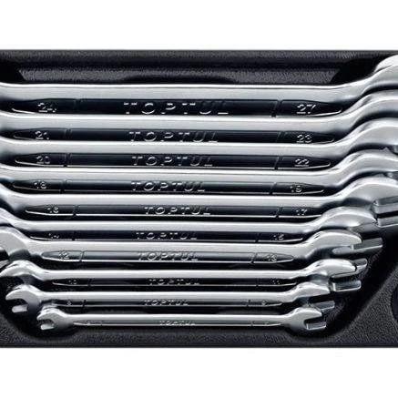 Каждый ключ в наборе отлично сбалансирован и имеет точные размеры, позволяя избежать повреждений как крепежа, так и самого инструмента. TOPTUL зарекомендовал себя как надежный производитель, и этот набор рожковых ключей не является исключением. Он соответствует высоким стандартам качества и подходит для профессионального использования в различных областях, включая автосервис, ремонт и техническое обслуживание.