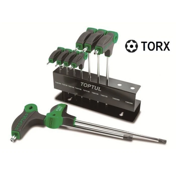 Набор включает ключи с размерами T10, T15, T20, T25, T27, T30, T40, T45 и T50, позволяя справляться с различными задачами, начиная от ремонтных работ до сборки сложной техники. Метрическая система измерения и Т-образный тип обеспечивают удобство в использовании и легкий доступ к труднодоступным местам. Ключи имеют отличный захват, позволяя избежать соскальзывания и повреждения головок винтов.