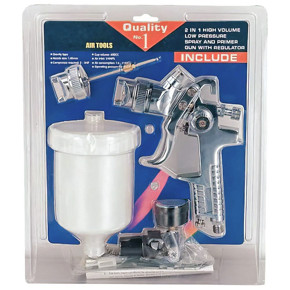 В комплект поставки входят: краскопульт HVLP H-827 (1 шт.), регулятор давления воздуха для краскопультов SP024 (1 шт.), форсунки (дюзы) для AUARITA H-827B диаметром 1,3 мм и 1,7 мм (по 1 шт.), фильтры для верхнего бачка (1 шт.) и ключ семейный (1 шт.).
