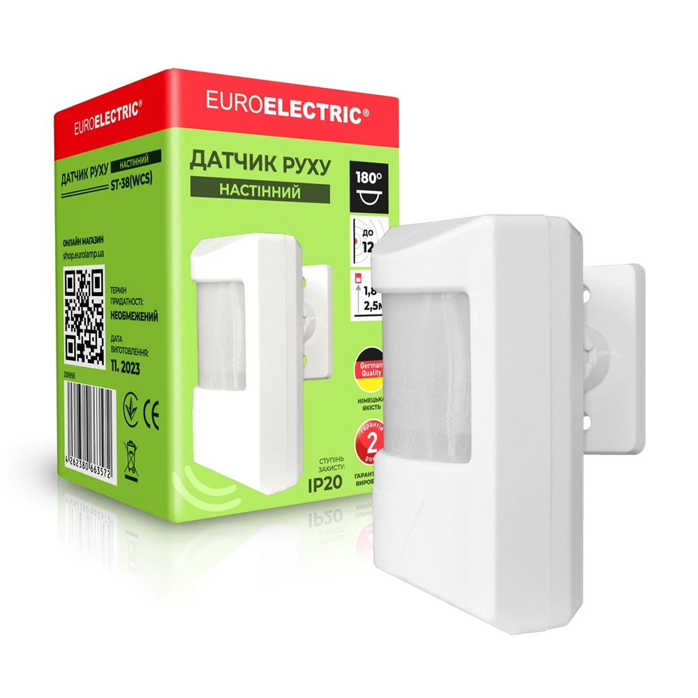 Датчик движения Euroelectric ST-38(WCS) — рациональный выбор для дома, офисов, торговых и складских помещений, холлов и подъездов. Закажите сейчас, чтобы добавить пространству удобства и безопасности, а себе — экономию и уверенность в качественной автоматике с гарантией 2 года.