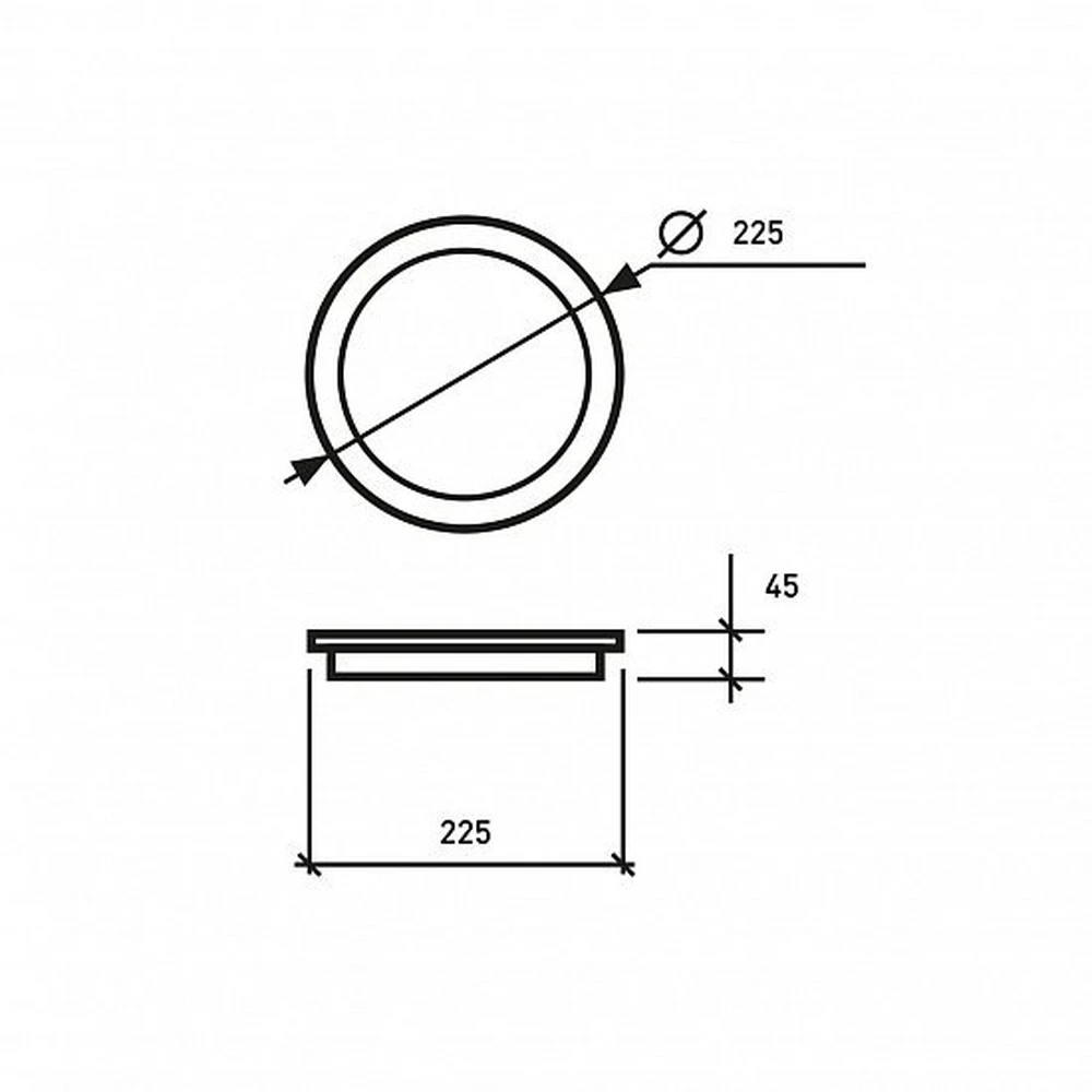 Корпус выполнен из комбинации алюминия и пластика: металл отводит тепло, защищая диоды и драйвер, а матовый рассеиватель дает мягкий, приятный свет. Минималистичный белый дизайн диаметром 225 мм и высотой всего 45 мм аккуратно смотрится на любых ровных поверхностях — бетон, гипсокартон, дерево. Вес устройства — 0,95 кг, крепление надежное и простое.