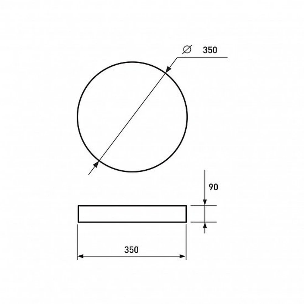- Аккуратный минимализм: диаметр 350 мм и высота 60 мм, лаконичный корпус из металла и пластика легко вписывается в современный интерьер и визуально «чистит» потолок.