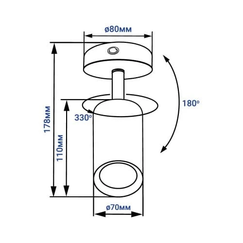 Светильник оснащен патроном GU10, что дает возможность выбора типа лампы. Вы можете установить как галогенную, так и светодиодную лампу, что позволяет управлять яркостью и цветовой температурой освещения в зависимости от ваших предпочтений. Встроенный выключатель, расположенный в основании светильника, упрощает управление, избавляя от необходимости устанавливать отдельный выключатель.