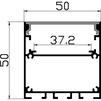 Алюминиевый профиль встраиваемый с фланцем шириной 50мм для декоративной подсветки для LED ленты шириной не более 37,2мм. Рассеивает свет на 120град. Идет в комплекте линзой опал, 2-мя заглушками, 2-мя пружинами и 2-мя болтами на 1м. Общая длина профиля 3м.