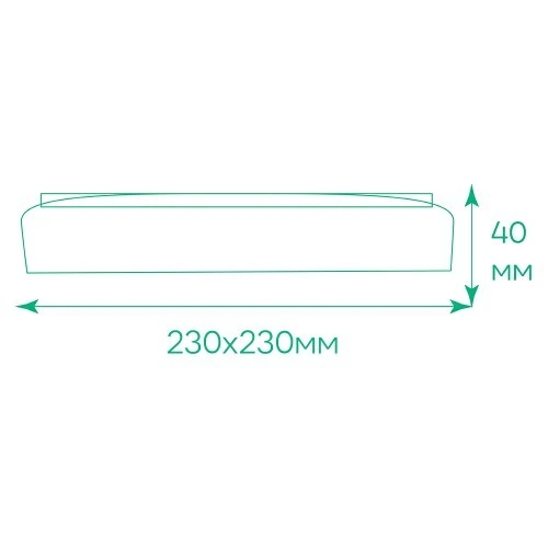 Корпус и рассеиватель светильника выполнены из прочного пластика, что обеспечивает легкость конструкции и простоту монтажа. Размеры светильника составляют 230x230x40 мм, а его стильный квадратный дизайн добавляет элегантности любому пространству. Нейтральный цвет света с температурой 5000K создает комфортную атмосферу, способствуя естественному восприятию освещенных предметов, благодаря коэффициенту цветопередачи Ra⩾80.